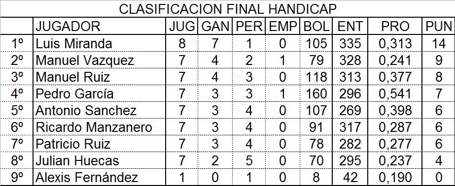 A. D. A. DEL BILLAR DE ALCOBENDAS > TORNEOS ALCOBENDAS > TORNEOS DE INVIERNO > III TORNEO DE INVIERNO 15-16